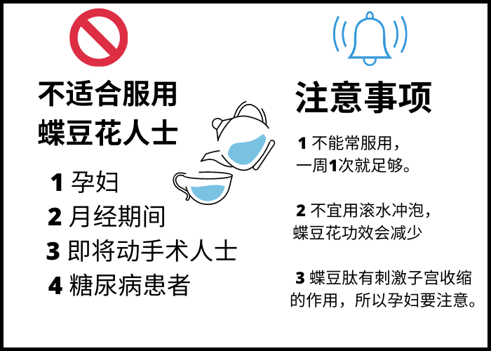 蝶豆花还含有维生素A、C和E,因此可以达到抗氧化、修护眼睛黏膜、提高免疫力、促进血液循环、养颜美容等功效。