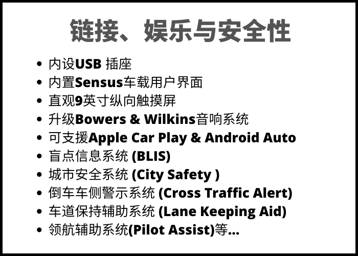 还有Scandinavian式的北欧图腾也被整合到座舱内饰中,加上高级Nappa皮革材质的前排座椅以及天窗等等,都展现了Volvo的优雅美学。