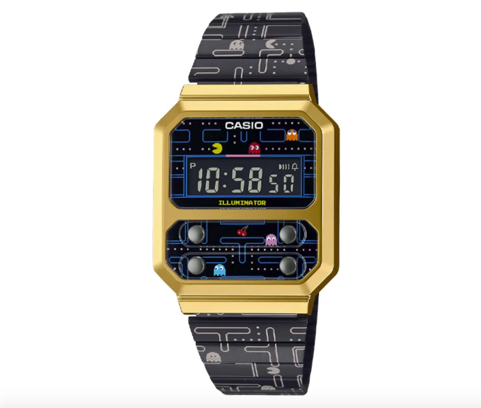 这次的「A100WEPC」外形上和复古的「F-100」轮廓上倒是非常相似,这款手表集合了日历、闹钟、秒表等功能,在40多年来说,可以堪称尖端电子表了。而这次经过复刻和革新,再加入PAC-MAN元素,就更具有话题了。