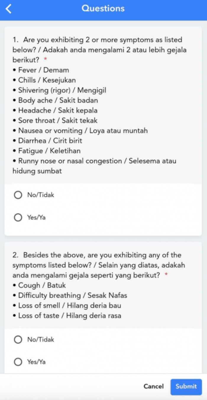 3 点击你的健康评估,偶然接触者必须「连续10天」都要回答相关3道问题和提交