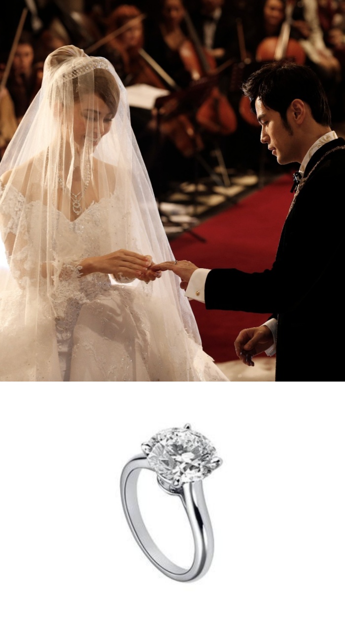周董和昆凌结婚时真的刷了很多头条,偏偏新娘的钻戒一直不在婚礼上露脸,最后才发现其实是来自Cartier的Solitaire 1895铂金钻戒,比起周董一直那么浮夸的路线,没想到求婚钻戒倒是很经典低调。