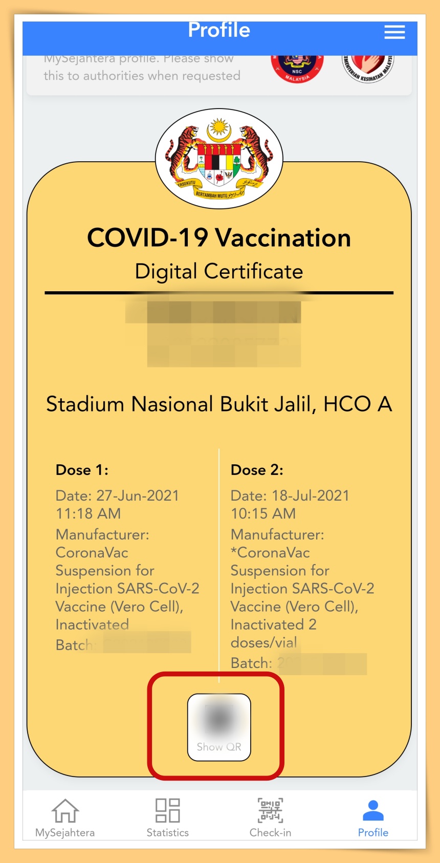 原来,我们是可以通过扫码MySejahtera App中的Digital Certificate查看帮你接种疫苗的医护人员名字和详情。