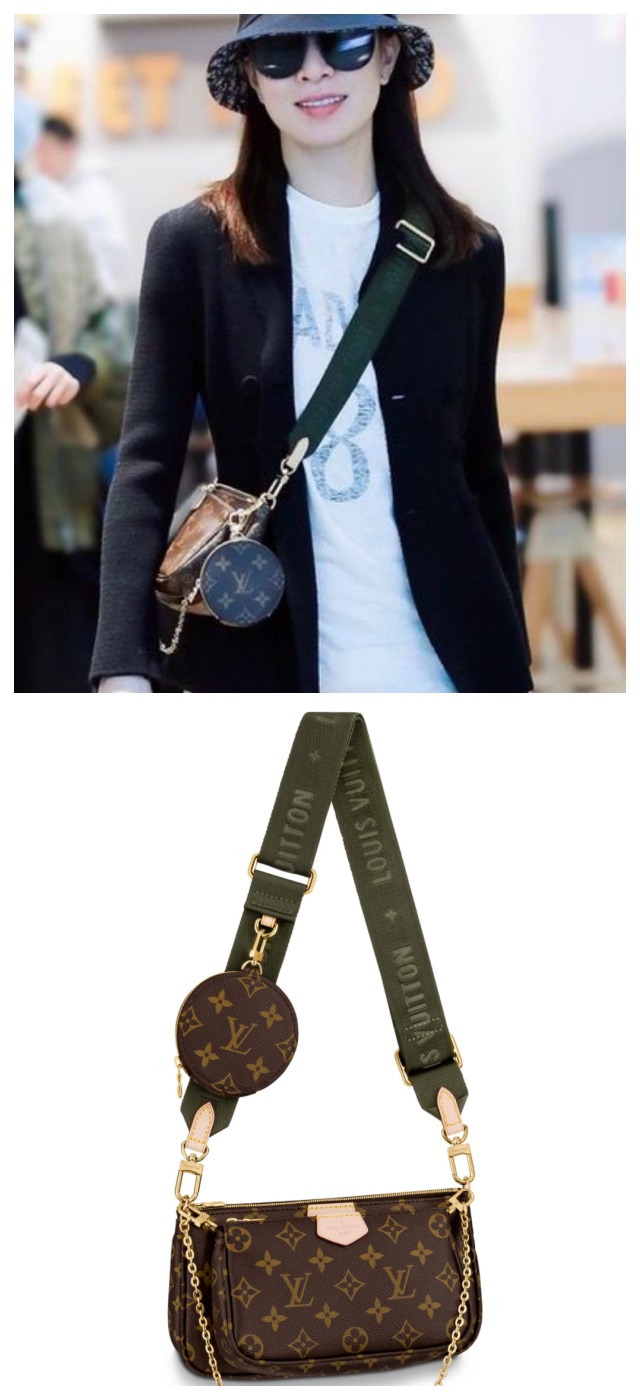 前阵子卖断货的LV Multi Pochette,会受到如此热烈追捧除了外形够精致,也能分开拆成3个mini pouch,让女生们大玩自由组装,佘诗曼当然也要有一个。