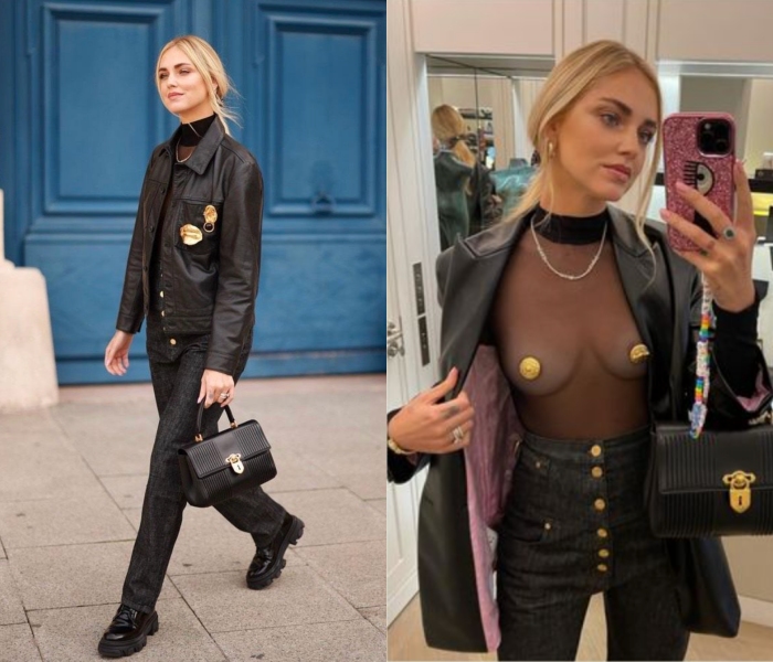 越穿越大胆的时尚网红Chiara Ferragni,最近也现身巴黎参加时装周。向来以穿搭就时尚奢华的她,这次像是出狠招,穿上超级性感的透视服装亮相,而且只用两颗金扣来遮点,一时间真不懂旁边的人眼睛要往哪里放!