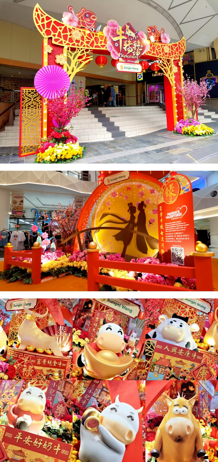 Sunway Putra Mall 今年的新春装饰也非常精致在中央位置不值了一座高达24尺中式宝塔,还有1座6尺手制而成的金牛五彩缤纷竹园,整体布置占地面积不大,但胜在够细节和超级有 Feel 啊!