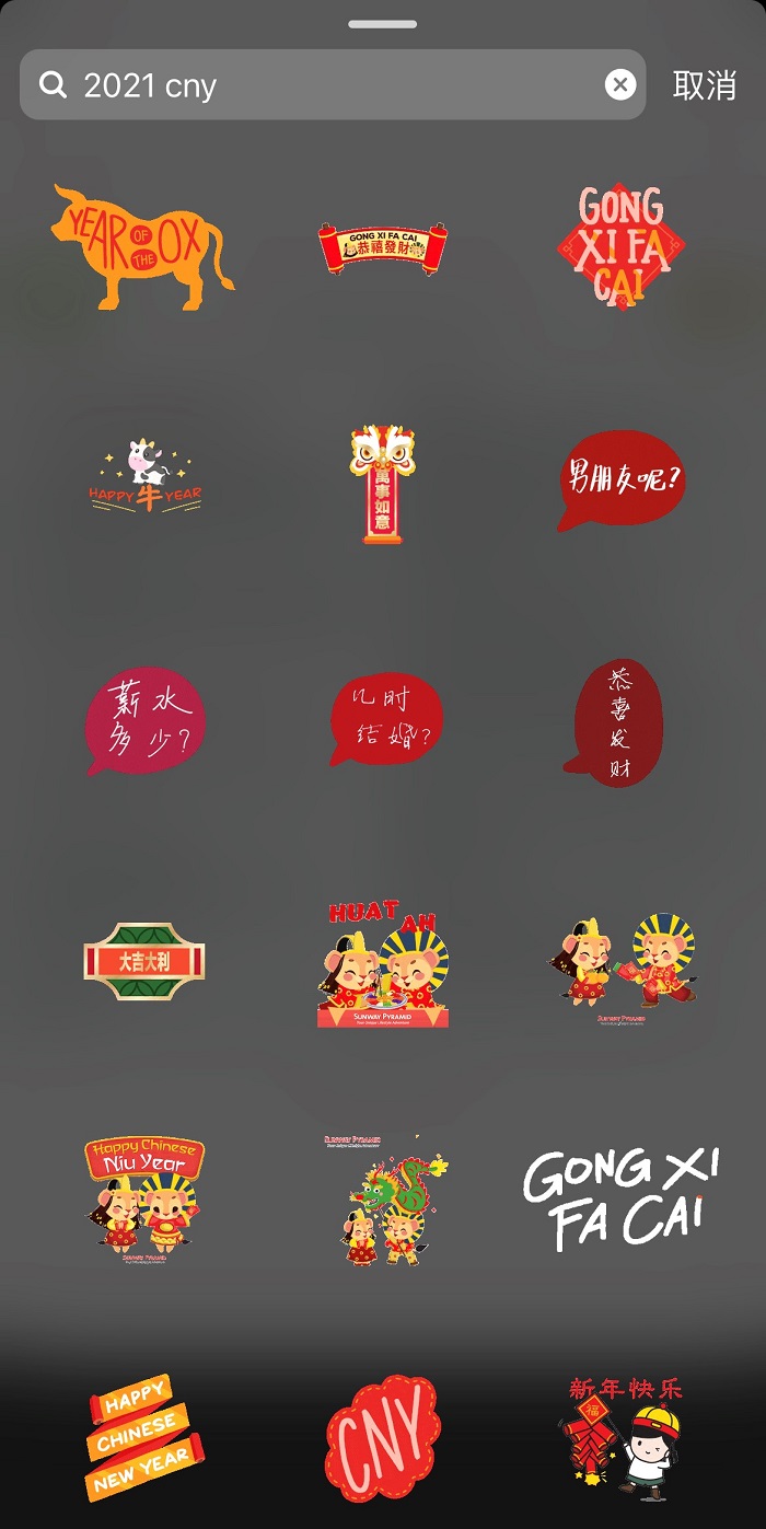 小编作为一个IG上瘾者绝对会留意每个季节推出的限时动态贴图,都说新年快来了!期间post限时动态再附上一些新年动态贴纸,保证你的动态能捉住别人的眼球。以下5个符合新年主题动态贴纸的关键字,我只偷偷跟你分享噢!