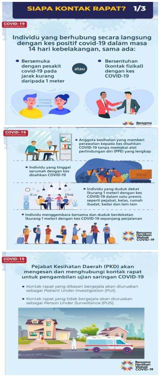 如果你有以下任何一种情况,并和确诊者密切接触过,就有可能面临更高的感染风险。这时候建议致电相关部门,或做好措施到医院进行检验。而且务必要提供你所接触过的人的姓名和接触日期。