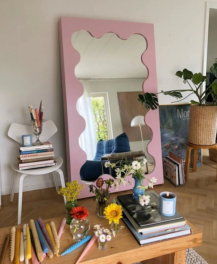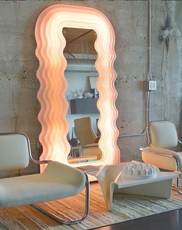 另一个著名的波浪镜子品牌就是来自Gustaf Westman,这个来自瑞典的品牌特爱波兰纹小细节,无论是在镜子上,还是家中桌椅、茶几等都能看到波澜元素,像Blackpink Rosé极爱在波浪镜子前拍照就知道了。