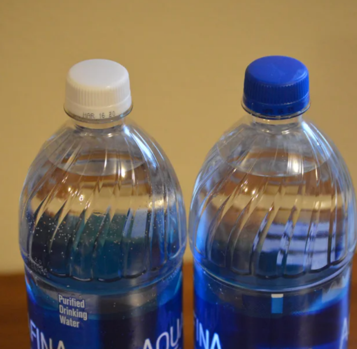 白色瓶盖的瓶装水都是源自供水公司,经过了过滤再推出市场。而饮用水经过加工后,水里的矿物质会流失,所以价格也相对的便宜。