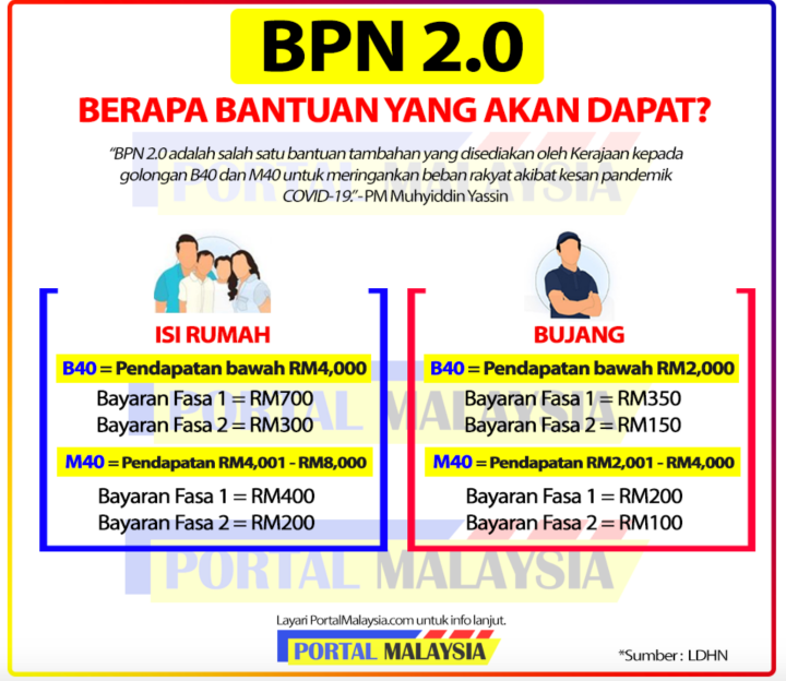 后来在了2020年9月份,政府再推出BPN 2.0计划,受惠者和家庭可以享有RM300 - RM1000之间的援助金,预计在2021年的1月26日派发。