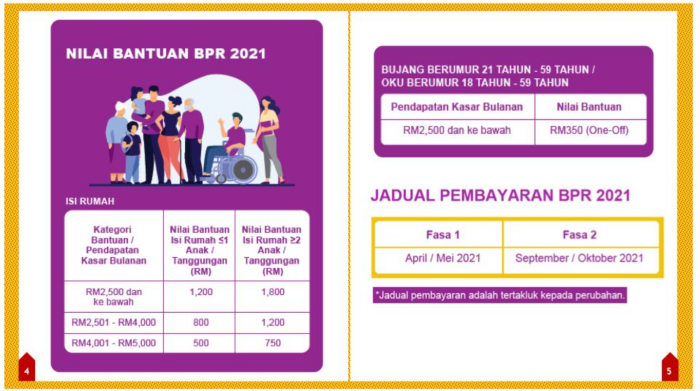 这是国盟政府推出的第一项援助计划,用来取代BSH援助金。BPR从2021年15日开始开放申请到2月15日,并预计在2021年的4月和5月份发放第一批援助金;在9或10月发送第二批援助金。BPR也是历史最高金额的援助金,只要符合资格的家庭就能获得RM1800的援助金。