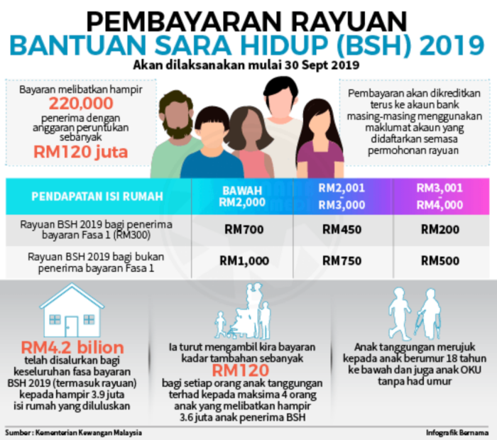 - 月入RM4001-RM500的家庭可获得RM750 (拥有2个孩子或以上);RM500(拥有1个还是或以上)