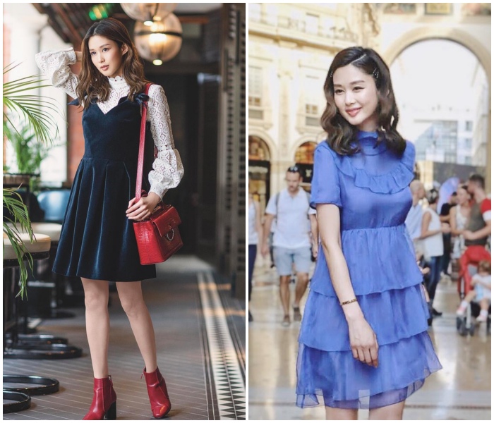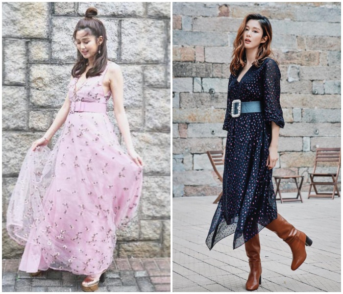 岑丽香日常特别钟情有高腰,或是A-line设计的裙子,除了能拉长身比例,还能用宽松的下摆遮掩小肚子!