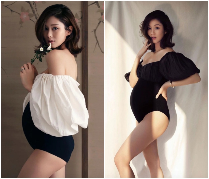 左:这时候的岑丽香已经快7个月;右:这个是怀孕5个月左右