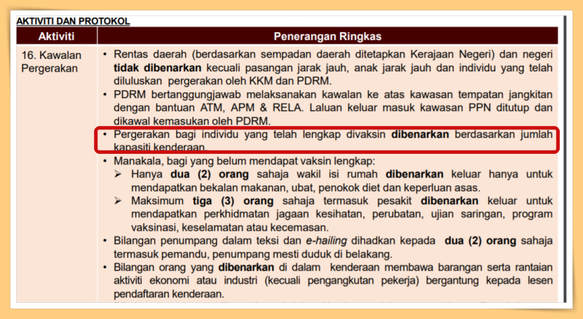 日前,看守首相宣布从8月20日起开始放宽标准作业程序,而国家安全理事会也更新了国家复苏计划第一阶段州属的标准作业程序(SOP),其中有一项是提及共车人数。
