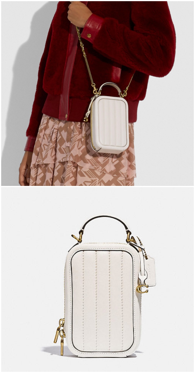 Coach这款mini包有着绗缝细节,奶白色搭配金属扣子,是百搭又不会出错的款式!