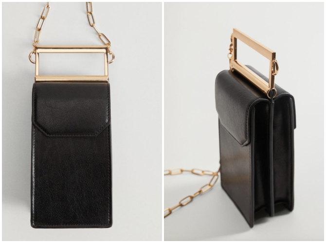 Mango的黑色手机包有点小酷炫,简单的金属链带和手提细节,完全是细节亮点。