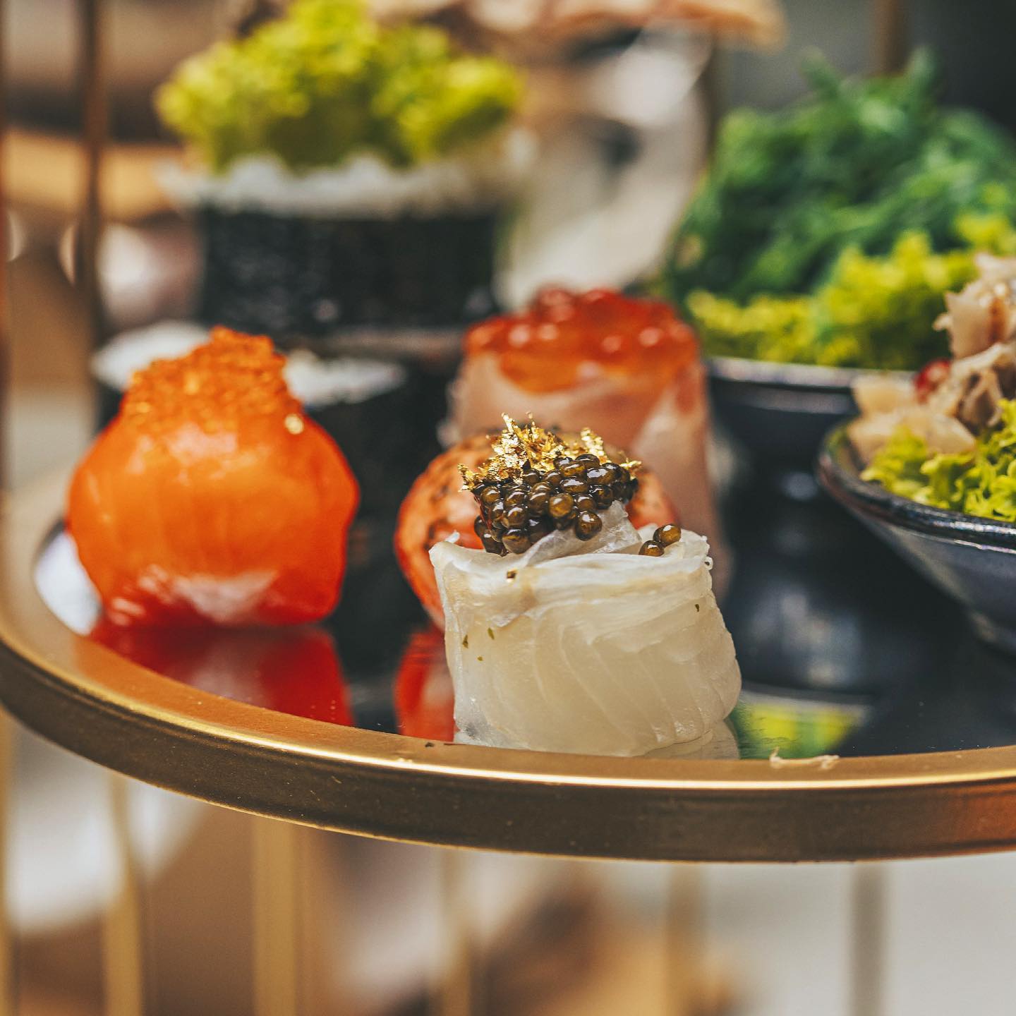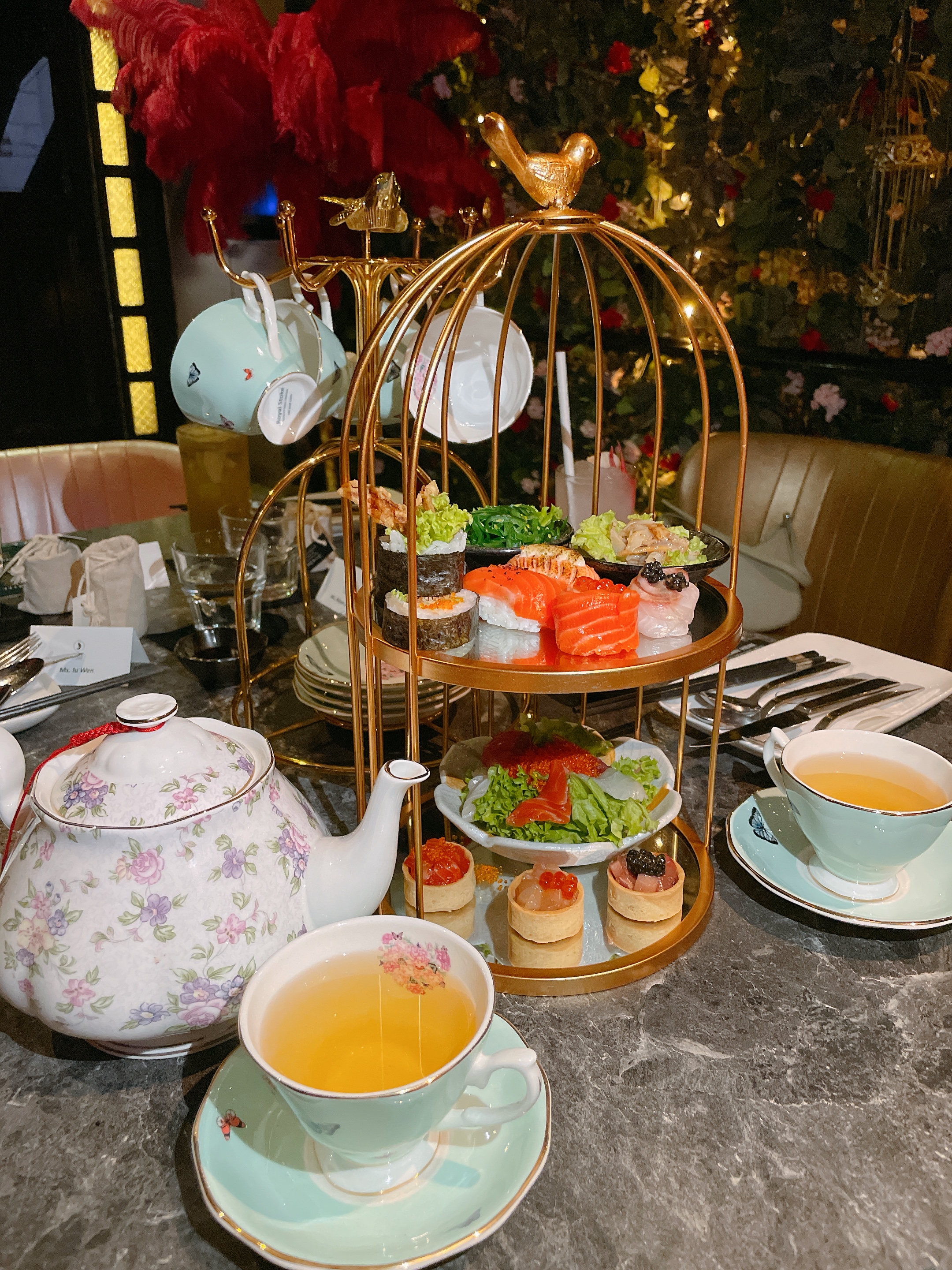 配合周年庆,Finch KL推出了Hiru-Tea日式下午茶,把寿司、刺身、日式沙拉精致摆在双层鸟笼设计的下午茶点心架里。端出来既好看也相当真材实料,相机满意你的味蕾更满意。