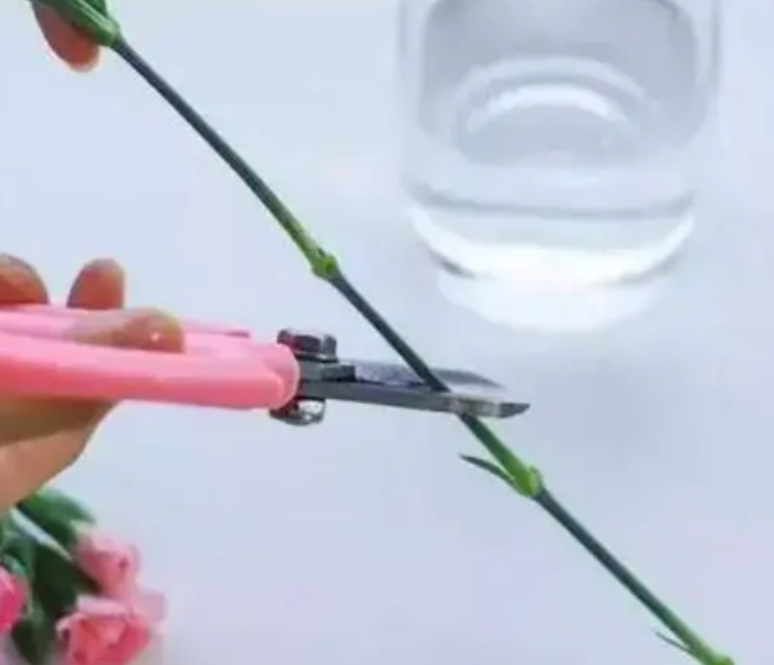 当然不是每个人都那么熟悉插花、照顾花,但是最基本的就是先用剪刀修剪已经腐烂或是过于密集的叶片,然后在花的根茎处以「斜剪」的方式,斜剪的切口能让花更好吸收水分。