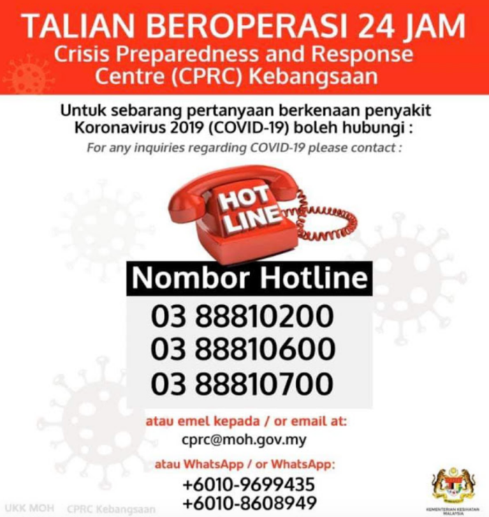 如果有民众在公共场合发现佩戴隔离手环者,可以透过以下的联络方式拨打电话,或是以WhatsApp的方式传照片投报,对抗疫情人人有责!