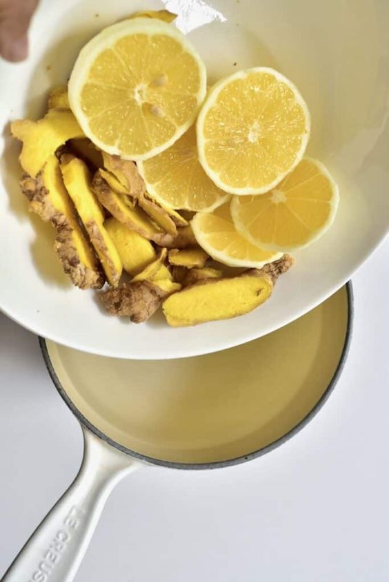 生姜洗净切片加水煮5分钟,熬煮好放凉加入柠檬汁。接着加入适量的柠檬汁和蜂蜜,搅拌均匀即可饮用,记得不要加冰块噢!