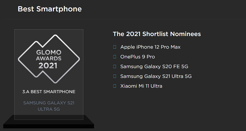 缺席一年之后,世界移动大会上的全球移动(GLOMO)奖再度回来。今次,Samsung Galaxy S21 Ultra被评委会评选为最佳智能手机。