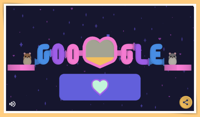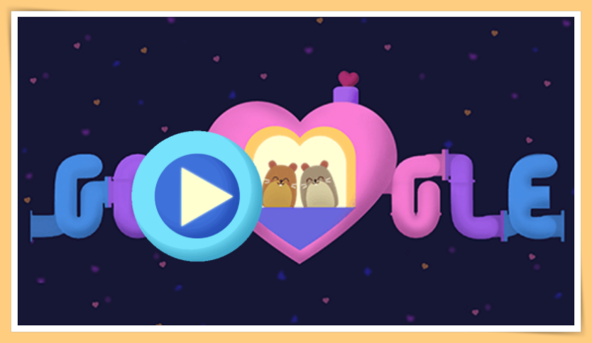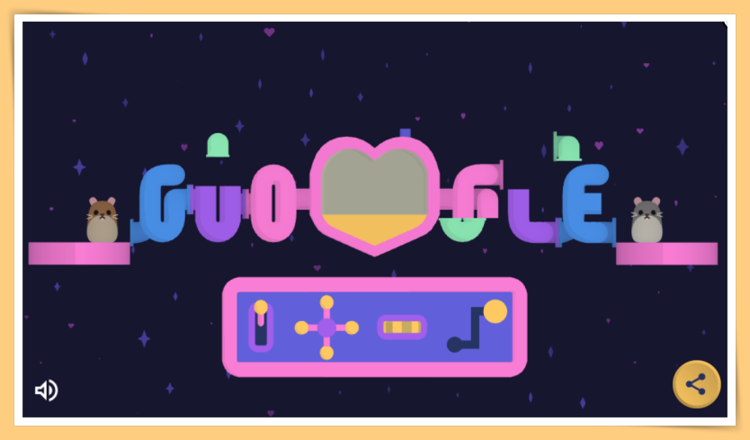 这次设计团队找来了两只相爱的小仓鼠为主角,它们在谈情时因不小心掉出了爱巢,于是你的任务就是要还原 Google 字样形状的管道迷宫,让这对可爱的仓鼠爬回爱巢一起团聚!