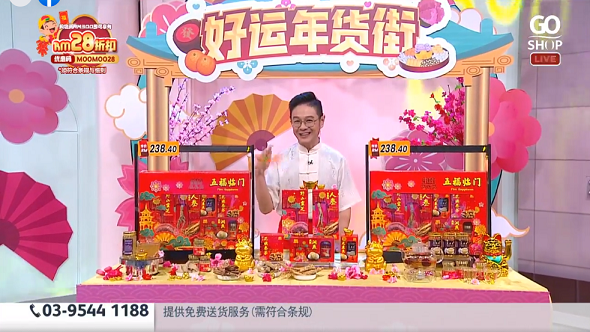 喜欢美食的你就别错过《好运年货街》,从主持人会在节目中介绍个种小吃好康,节目从即日起到2月6日,每逢周一/六,中午12点及每逢周四的下午2点30分播出;喜欢时尚和美容的女性们,就一定要留守《华丽靓靓店》了,节目从即日起到2月6日,每逢周四中午12点;周六下午的2点30分播出。此外,客户也别忘了在2月1日到14日这段期间,可以参与Go Shop App推出的「Catch MOOOMOODA」游戏,你就有机会赢得总值高达RM28,888的奖品!