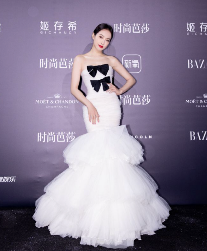 身材好就能任性的穿上鱼尾礼服,宋茜这套是Giambattista Valli的高定礼服,层次感的鱼尾完全启动了宋茜的浪漫柔美~