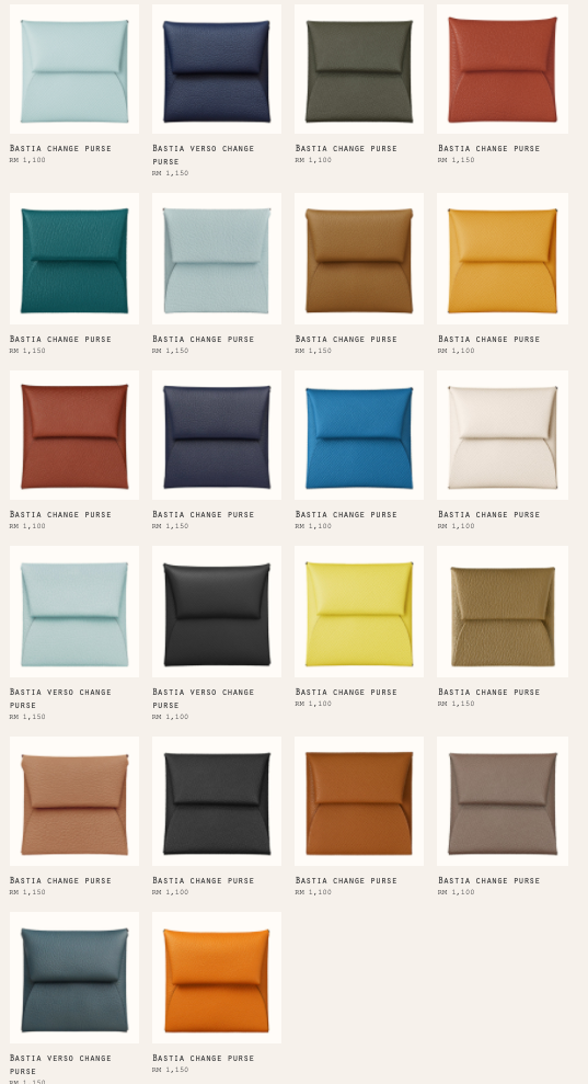 这款Bastia Change Purse 有18种颜色可选择,单色价格为RM1100;如果喜欢内搭不同配色的话,可以选择Bastia Verso Change Purse,价格为RM1150,是不是第一次觉得爱马仕也能无痛入手呢?