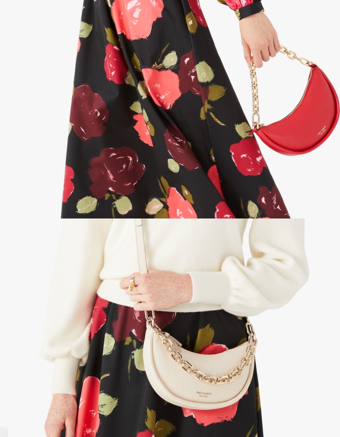 Kate Spade 假日系列一如既往缤纷又甜美,服装设计更是超击中女生的心思,但是手袋设计还是最精彩,尤其是可爱的Pizza手袋,完全是年末派对的焦点所在,不过小编更喜欢的是设计感更鲜明的Smile Bag,有了金属链带的设计,还有明艳配色,背拿上身特别好搭配,另外很吸引人的Carlyle手袋系列,毛呢的点缀看起来特别优雅,适合喜爱轻熟女装扮。