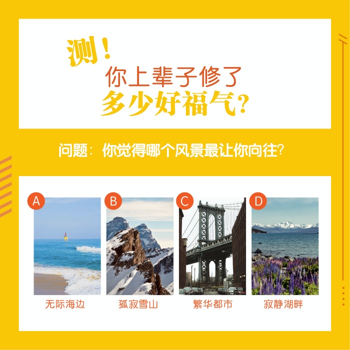 遇到好事、坏事的时候,都会忍不住想自己上辈子到底是修了多少福气才会遇到这些事。或许做个小测验,看看这辈子会得到上辈子结下的好运有多少吧~