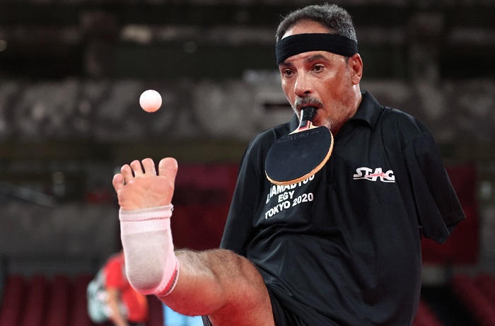 一切皆有可能!这句话在残奥会上真真切切地发生。来自埃及的乒乓选手Ibrahim Hamato,与其他选手不同选择用嘴叼住球拍,从里约残奥会到东京残奥会,用强大的灵魂实现了自己第二次残奥之旅。
