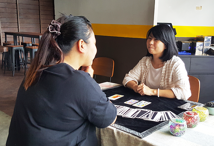 现场还有塔罗牌中塔罗牌站占卜师为大家解忧!