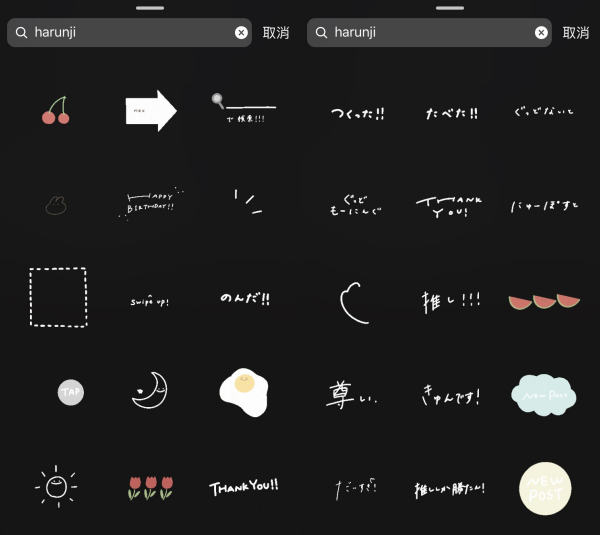 荷包蛋、樱桃、爱心等日系手绘风格的GIF贴图,也很适合常用TAP、SWIPE UP、NEW POST等限动用语的朋友。
