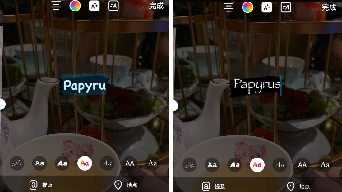 这款隐藏版字体名为「莎草体(Papyrus)」,源自古埃及人使用的「纸莎草」,因此看起来有种复古又文青的美感。只要在限时动态打字,先选择comic字体(由左数来第4个),打出「Papyrus」,记得是一个一个字打出,字体就会自动变成莎草体。