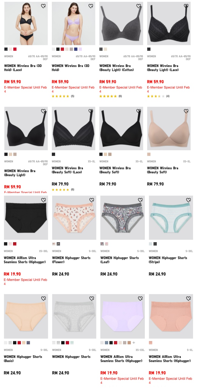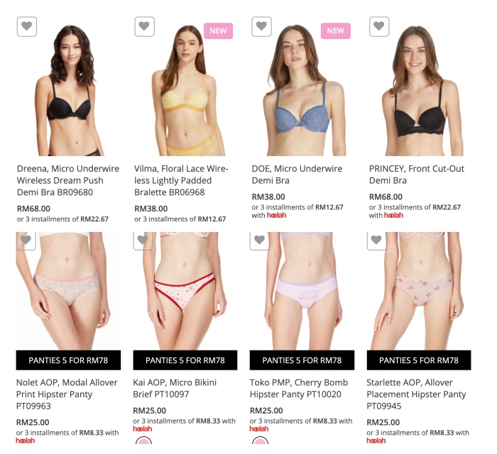 小编自己也很推的6ixty8ight,因为胜在款式多,价格也很可爱,特别适合小资女入手。如果担心自己买到不合适罩杯的内衣,小编也建议选购bralette内衣,虽然没有集中的功能,但因为穿起来舒适,特别合适天气那么热的马来西亚,等以后出关了再买过新内衣吧!