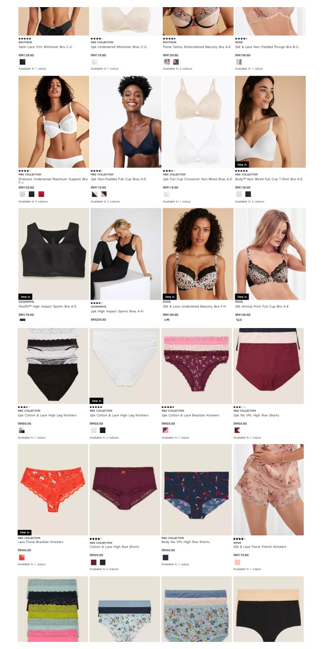 据悉在英国每3个女生就有一个穿着M&S的内衣,难怪有着「女士内衣之王」的称号(笑)。无论如何,反正在大马的我们也能在M&S的官网上买到了!款式设计也不少,而且小编浏览了网站,发现许多款式都很适合较为丰满的女生,难找到内衣的丰满女生不妨看看哦!