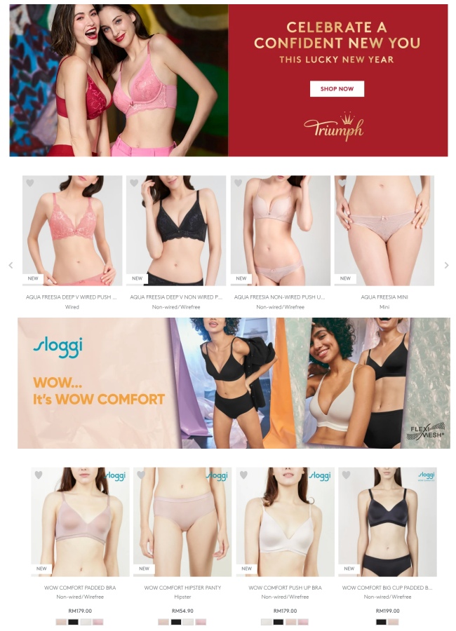 说到买内衣裤怎么会遗忘Triumph呢?现在到Triumph 网站除了能买到同名品牌,还有sloggi原来也是一家,选择非常多。另外,害怕买错size的你,还能在官网上预定「Fit Advice」的服务,降低大家买到不合适的内衣,十分贴心哦!