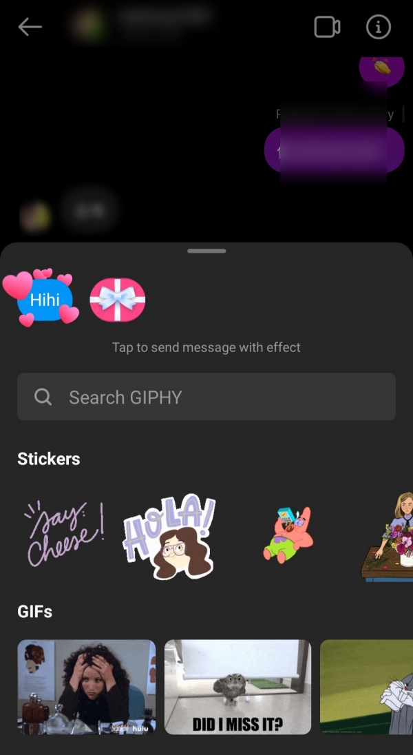 其实很简单,只要你打开任何一个 IG 私讯的聊天室,一旦输入完文字后,在左边的相机图示会变成「放大镜图示」,直接长按它即可。