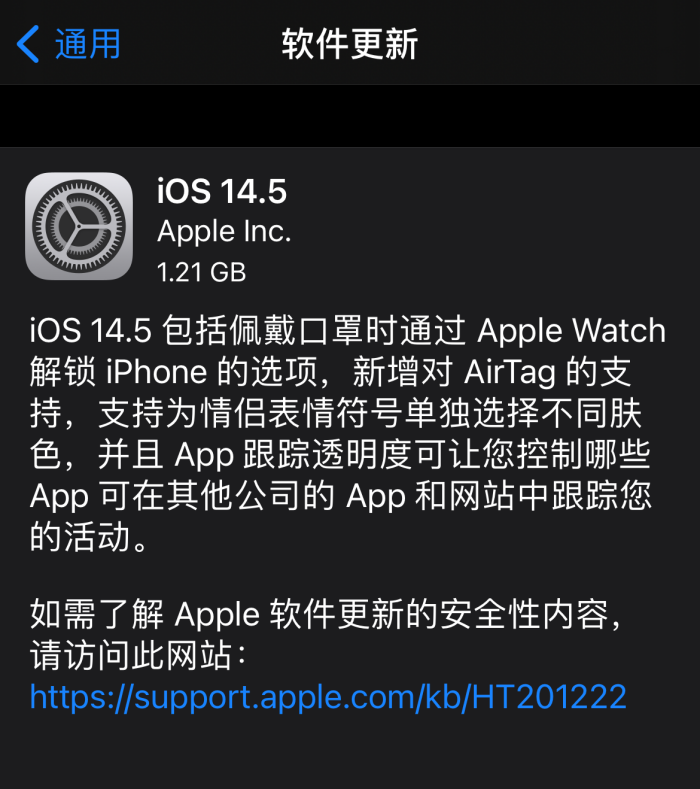 iOS 14.5部分更新: