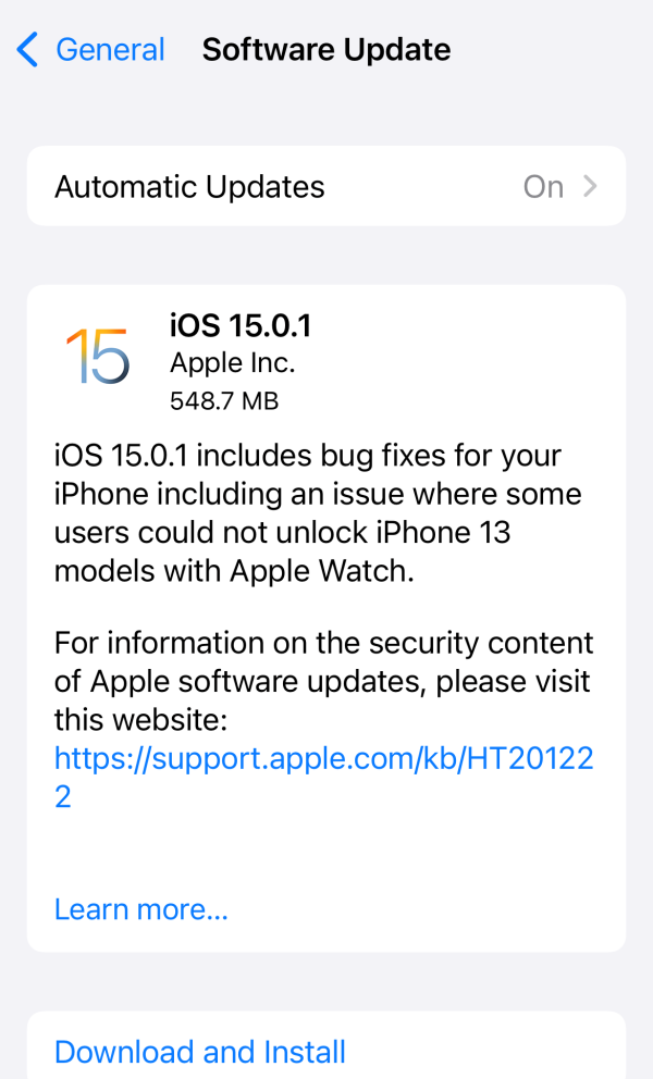 在上述的两个Bug中,Apple Watch 无法解锁 iPhone和一直出现储存空间已满的提示这两个状况,苹果在释出的 iOS 15.0.1 已经提供了解决,如果你的iPhone也有这个问题可以尽快更新。