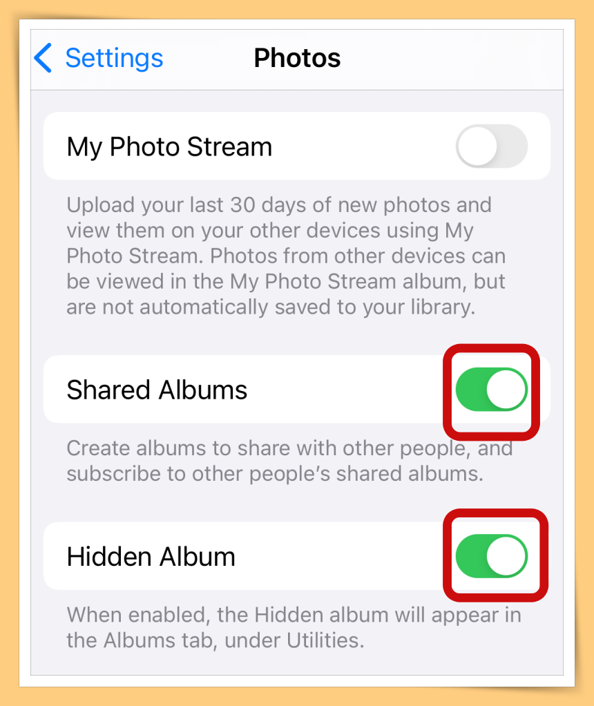 ❤️步骤2:打开“Shared Album”和“Hidden Album”
