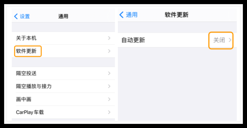 每当有新的系统更新时,iPhone会自动下载安装包,其实果粉可以关闭自动更新,这对手机的容量也所帮助。