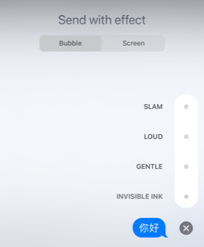 那么写完短信后可以长按发送键,点击上面的屏幕(Screen),就可以选择自己喜欢的特效发给对方。