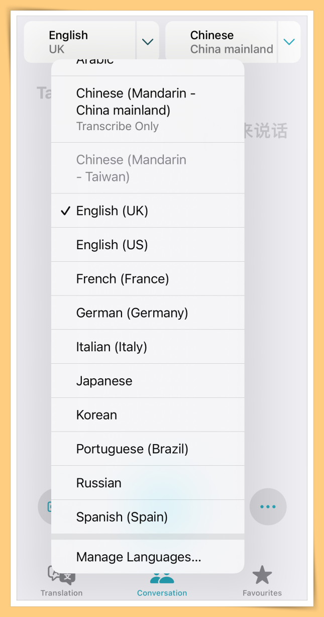 这个“Translate”确实很好用,不过可以发现里面的语言少了“泰语”,如果有泰语去曼谷旅行就不用担心沟通有问题了。