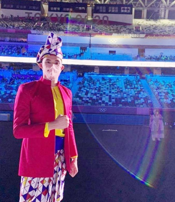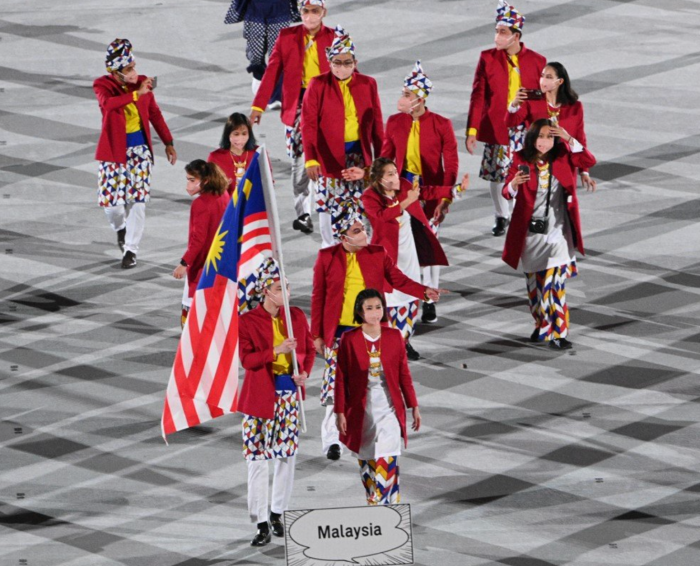 第一个先来看马来西亚充满浓郁色彩的设计!这次精心打造的进场服装原来灵感来自英雄人物Hang Tuah的武士服装,英姿飒爽的细节搭配由马来西亚工艺大学艺术和设计系融入国旗的红、黄和蓝色,在传统与新几何图案中结合出火花,而且男士门还特别带上头饰,相当亮眼!来看我们的游泳健将Welson帅气示范就知道了!