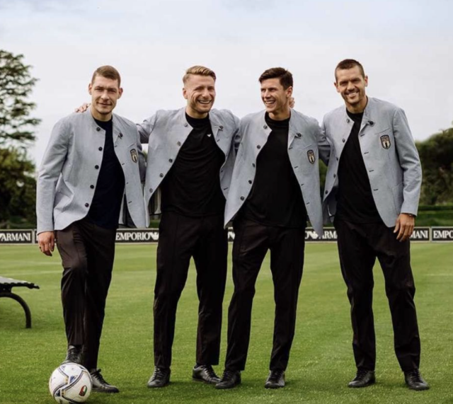时尚之都意大利的衣服怎么可以不时尚?由Emporio Armani来操刀,像这系列灰色外套上就搭配了意大利国旗胸徽,看起来像拍品牌广告多一点woh~