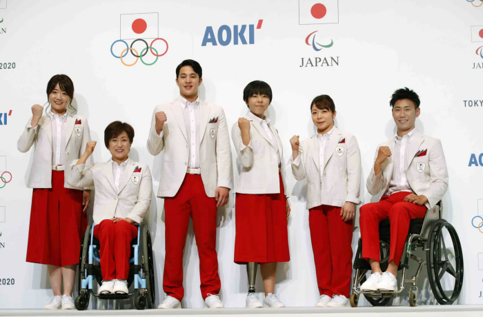 作为主人家,日本的礼服由国民西服品牌AOKI设计,以国旗的红白配色运用在麻质布料上,以迎合夏天。而运动服部分则是由ASICS担任,用了日出红作为主色调。细节上则结合了日本传统折纸艺术以及现代科技线条,展现日本的力与美。
