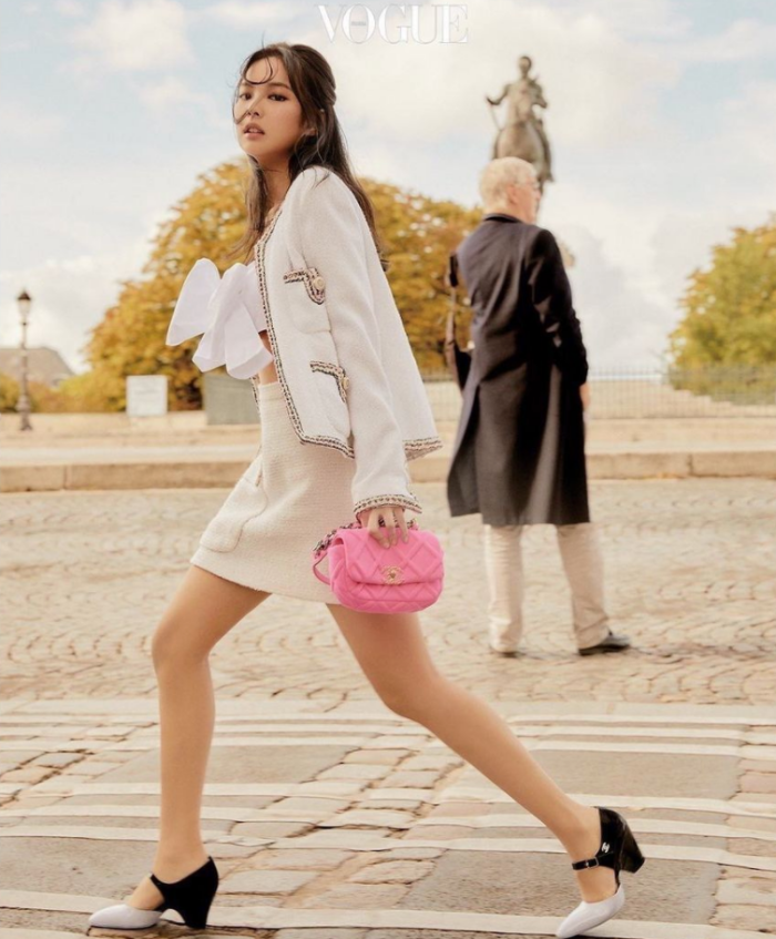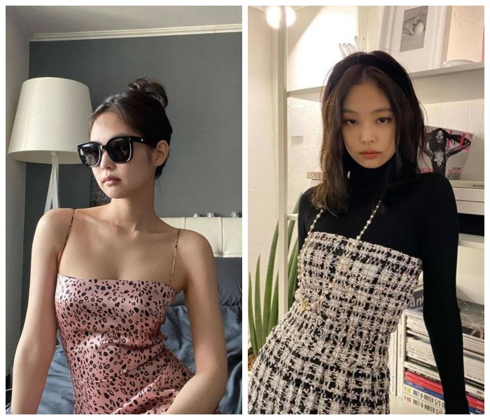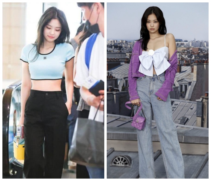 其实Jennie的身高只有162cm,但每次拍照都能有170cm的气场,那是因为她很懂的自己身型优点,观察了一下Jennie非常喜欢穿短版上衣或可以提高腰线的裙装,偶尔还会露出小蛮腰,这样下半身就会看起来比例很好。